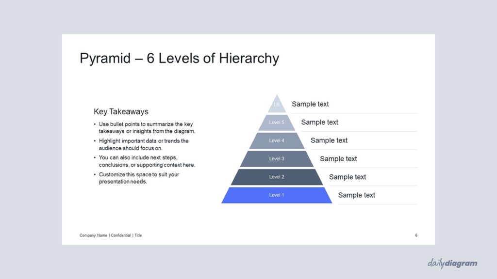The pyramid with sharp corners diagram provides a classic way to show hierarchy, priorities, or step-by-step processes.