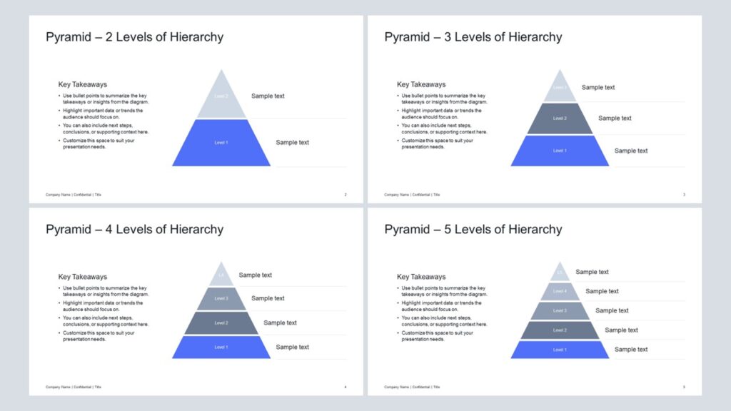 A pyramid diagram for PowerPoint with sharp corners that illustrates hierarchies, layered structures, or business frameworks with clarity, flexible layouts, and impactful visuals for presentations.